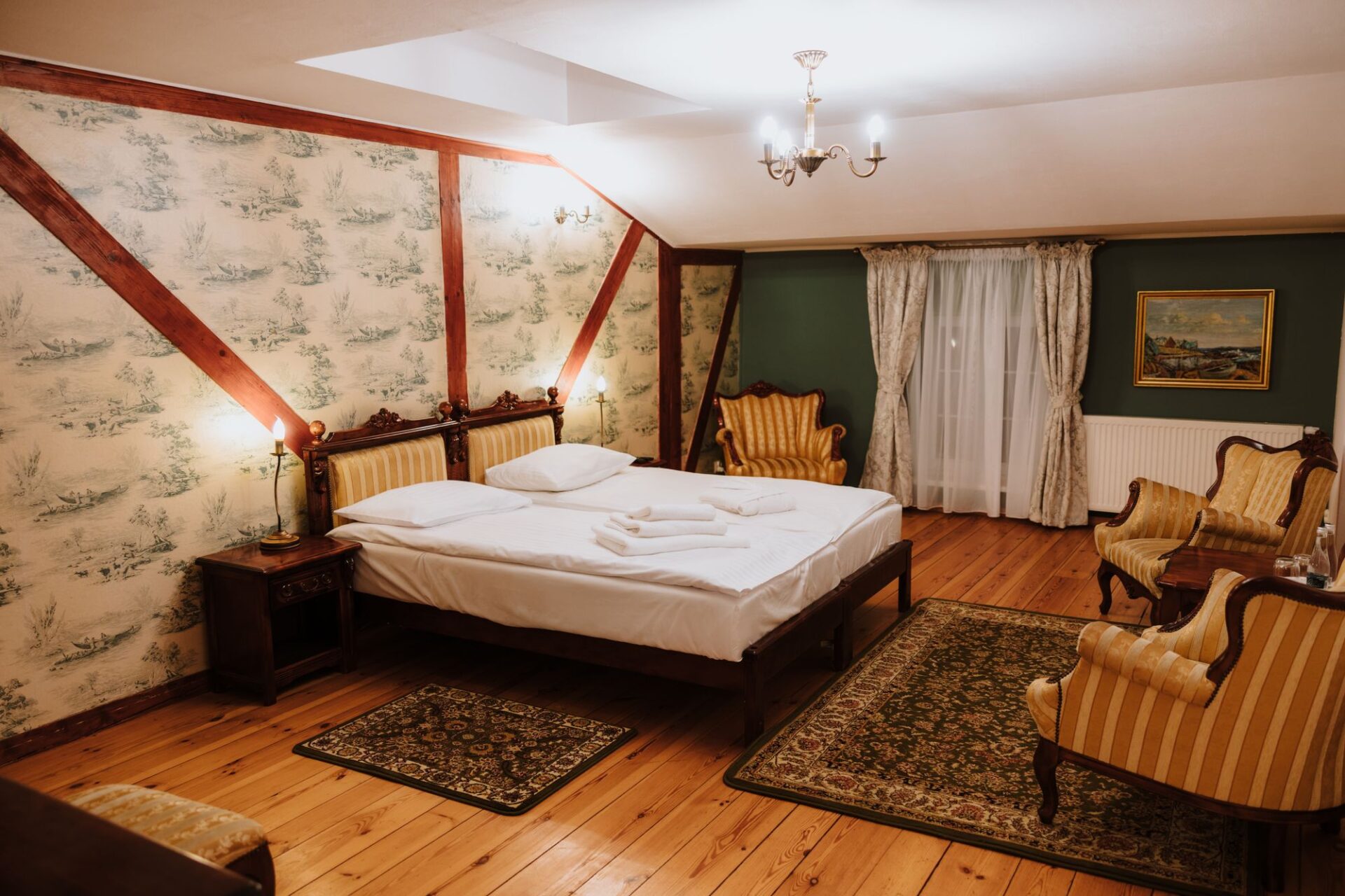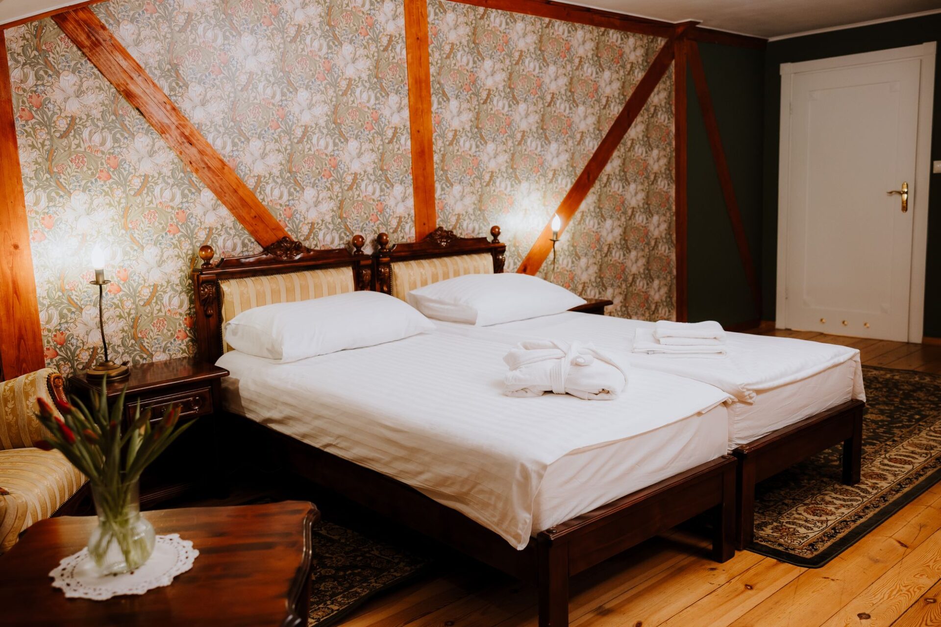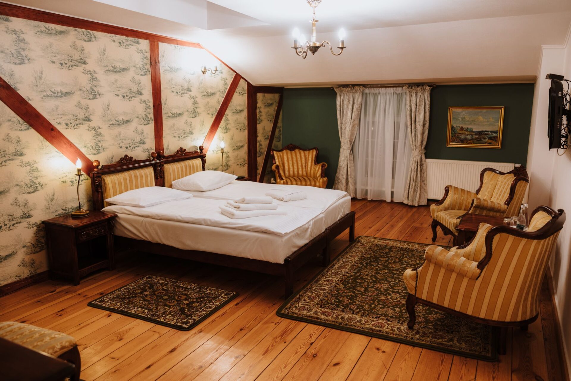 Zabytkowe wnętrza Dworu Lisewo skrywają Komnaty Magnackie, w których historia spotyka się z nowoczesnym standardem wypoczynku.