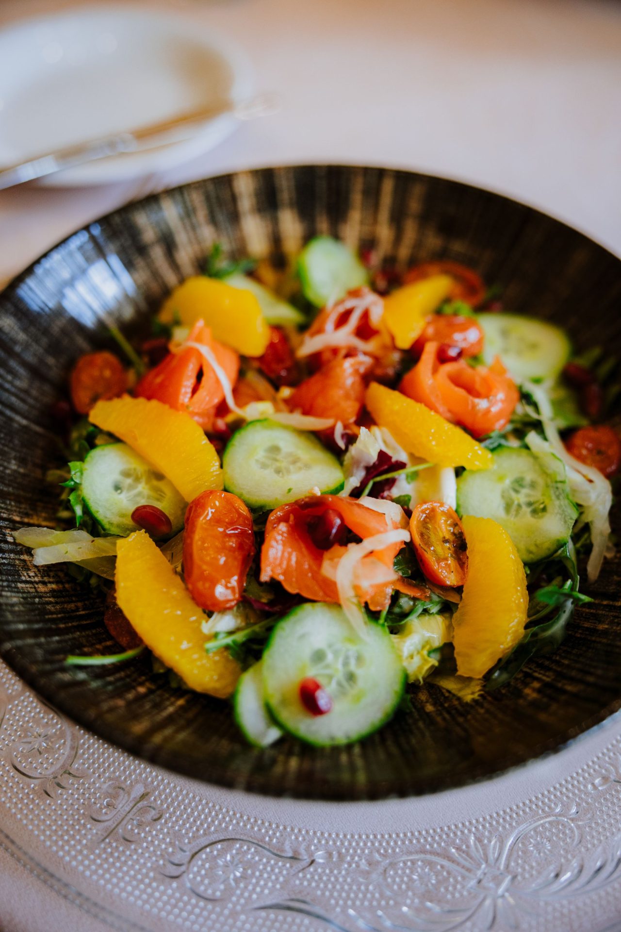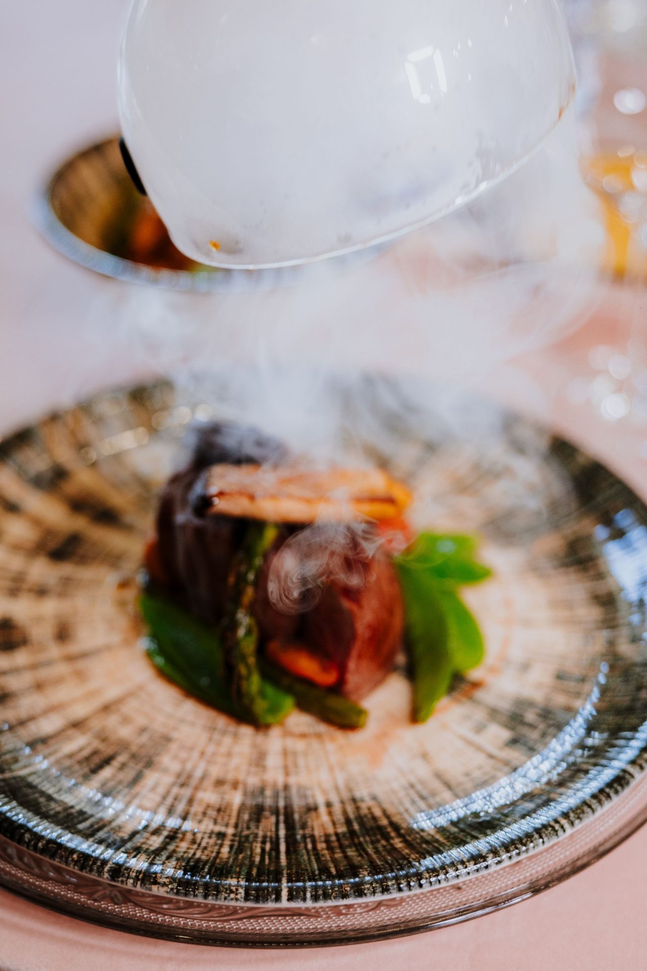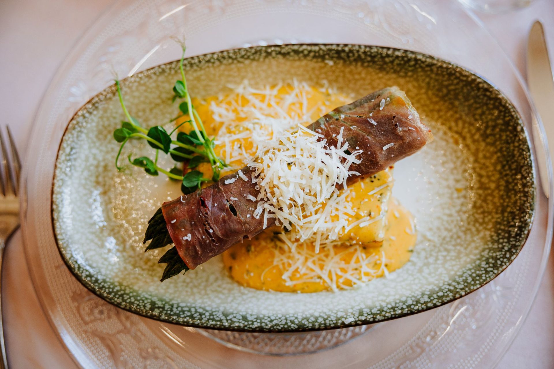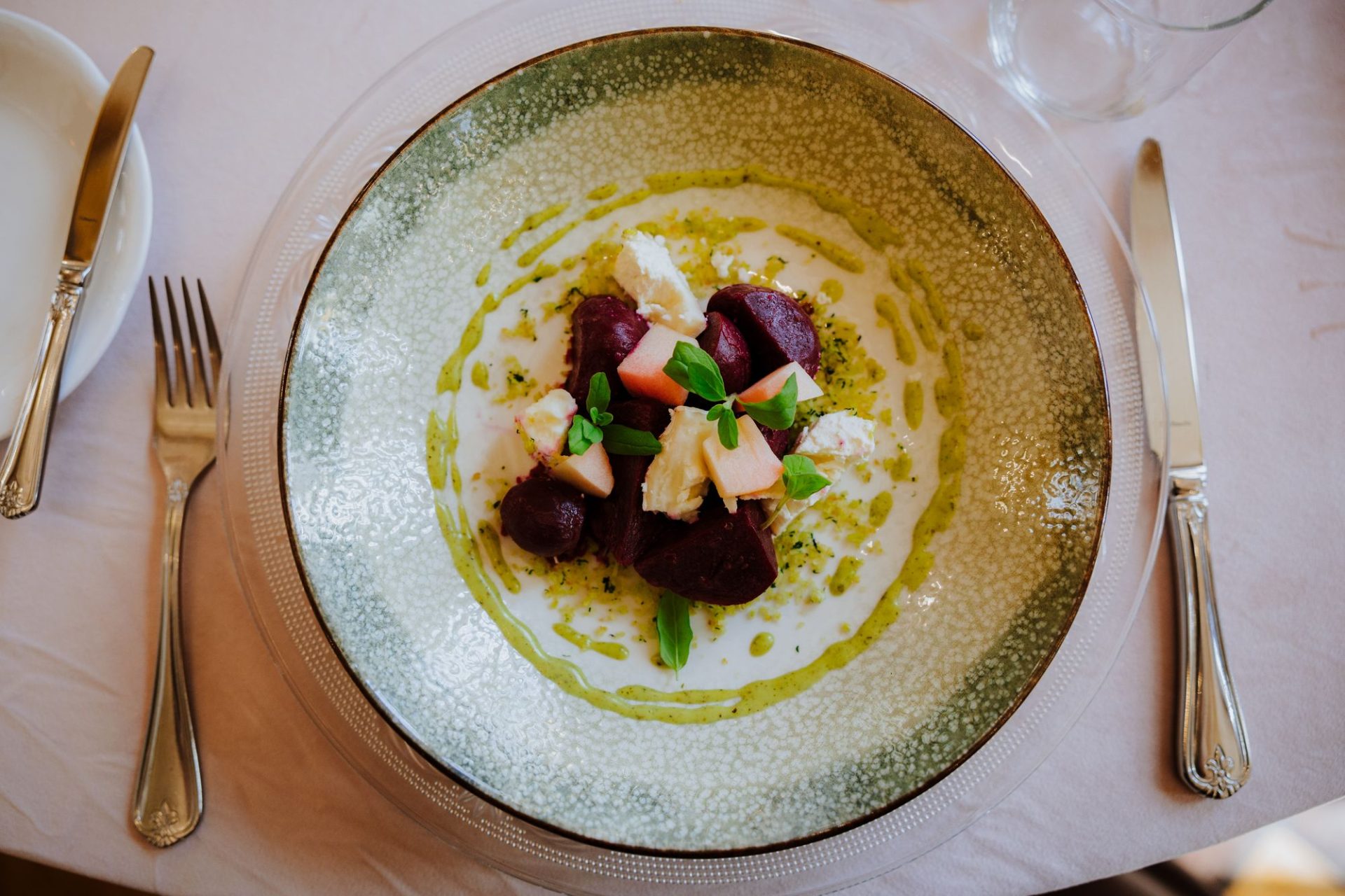 Sezonowe, oparte na kuchni szlacheckiej – dziczyzna, grzyby, dania z pieca, rozgrzewające zupy, karta win dobrana do pory roku. Menu każdego wesela ustalamy indywidualnie z parą – jesień i zima dają nam do tego najciekawszy materiał w roku.